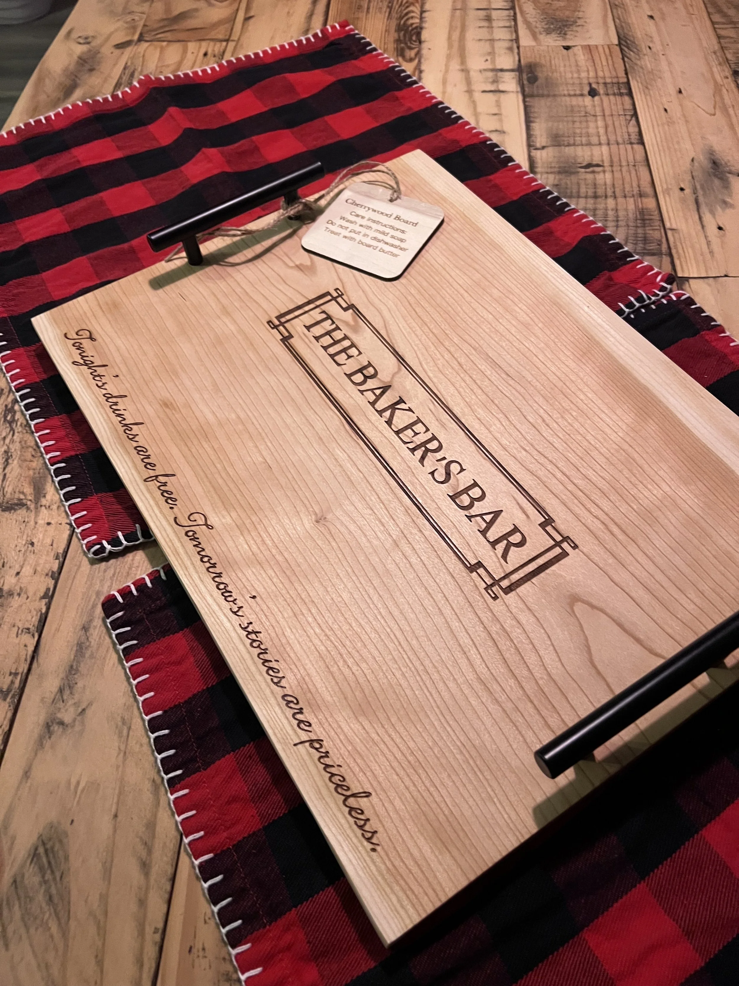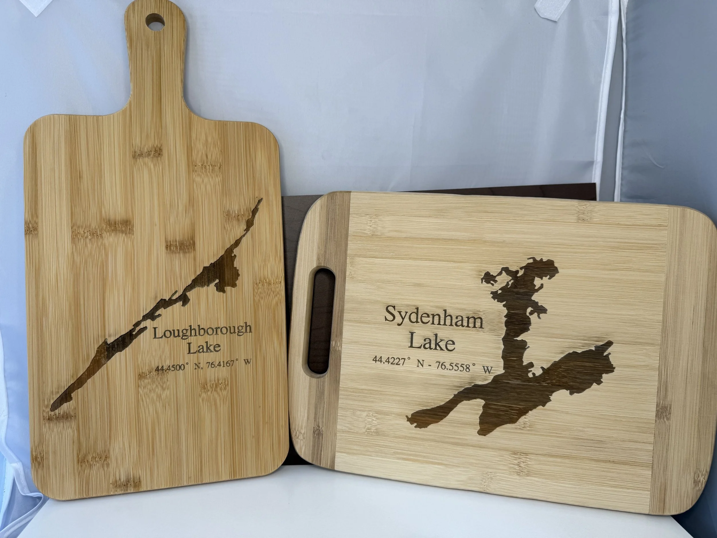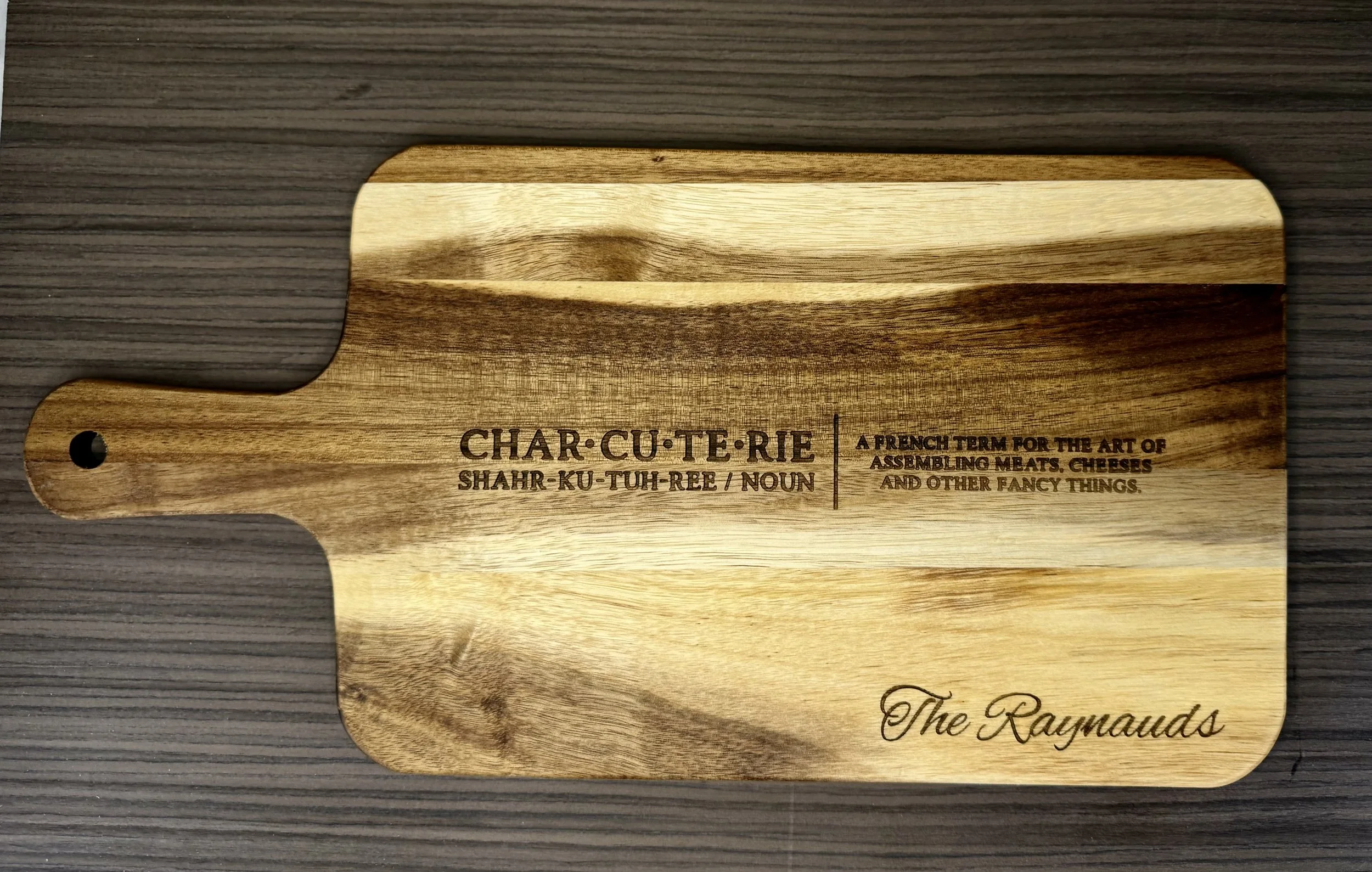 Starting at $25 for Bamboo or Acacia wood boards (16”x8”)