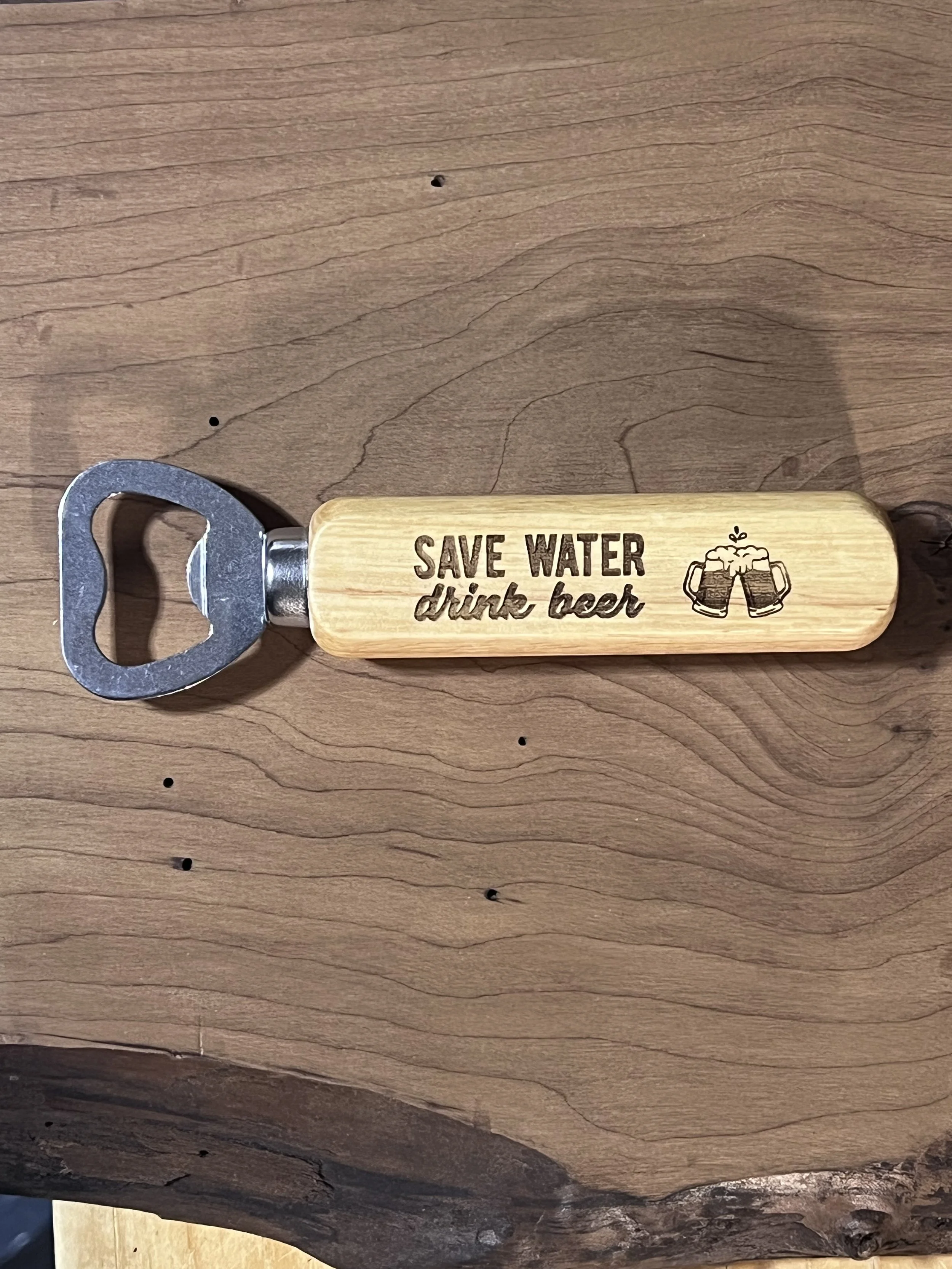 Other openers available in round wood magnet style, steel with leather middle, card-steel style. Email to inquire!